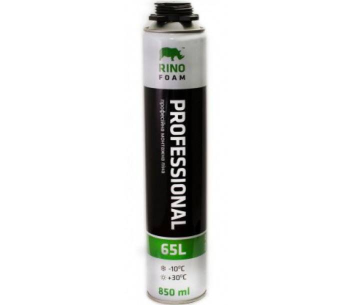 Rino Professional RF-850 однокомпонентна монтажна піна екстра-класу. Розроблено спеціально для професійного застосування. Відрізняеться високим виходом готової піни, до 65 літрів, в залежності від робочіх умов -температури, вологості повітря і т.ін. наносится за допомогую монтажного пістолета. Мае чудову адгезію до більшості будівельних матеріалів, таких як дерево, бетон, каминь, метали та ін. Рівномірне розширення і дрібнопориста структура комірок сприяе якісному заповненню робочіх отворів . Газ -витіснювач , який не містить хлорфтору-вуглеводнів (фреон), абсолютно нешкідливий для озонового шару.